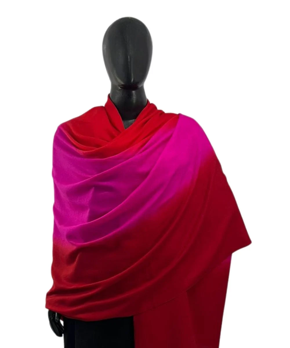Ombre Pashmina Cashmere Shawl in Cherry Red and Fuchsia Pink