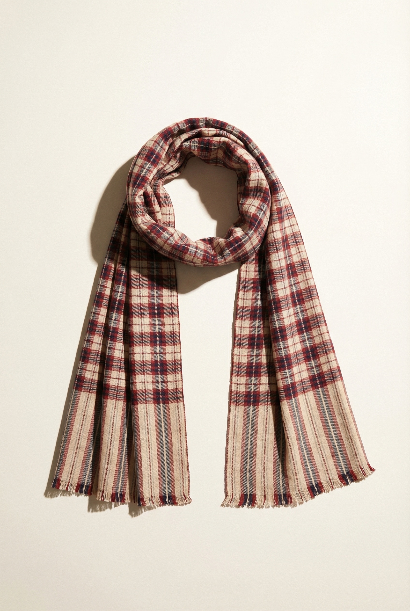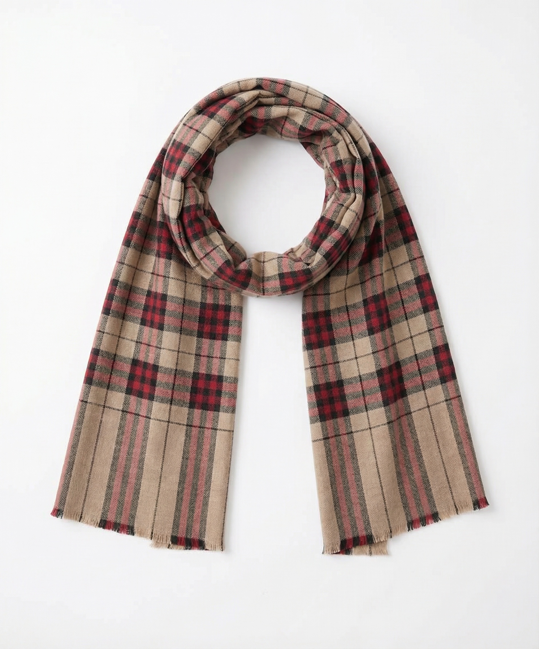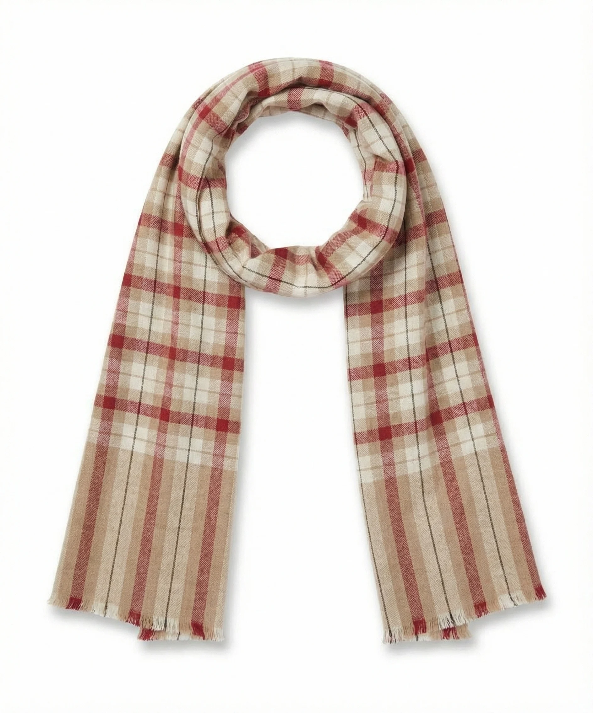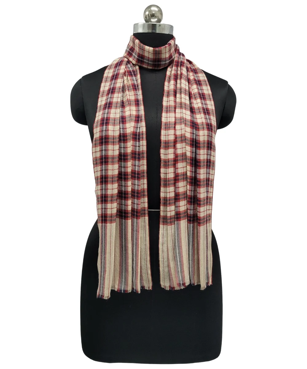 Beige and Red Tartan Checks Pashmina Cashmere Scarf