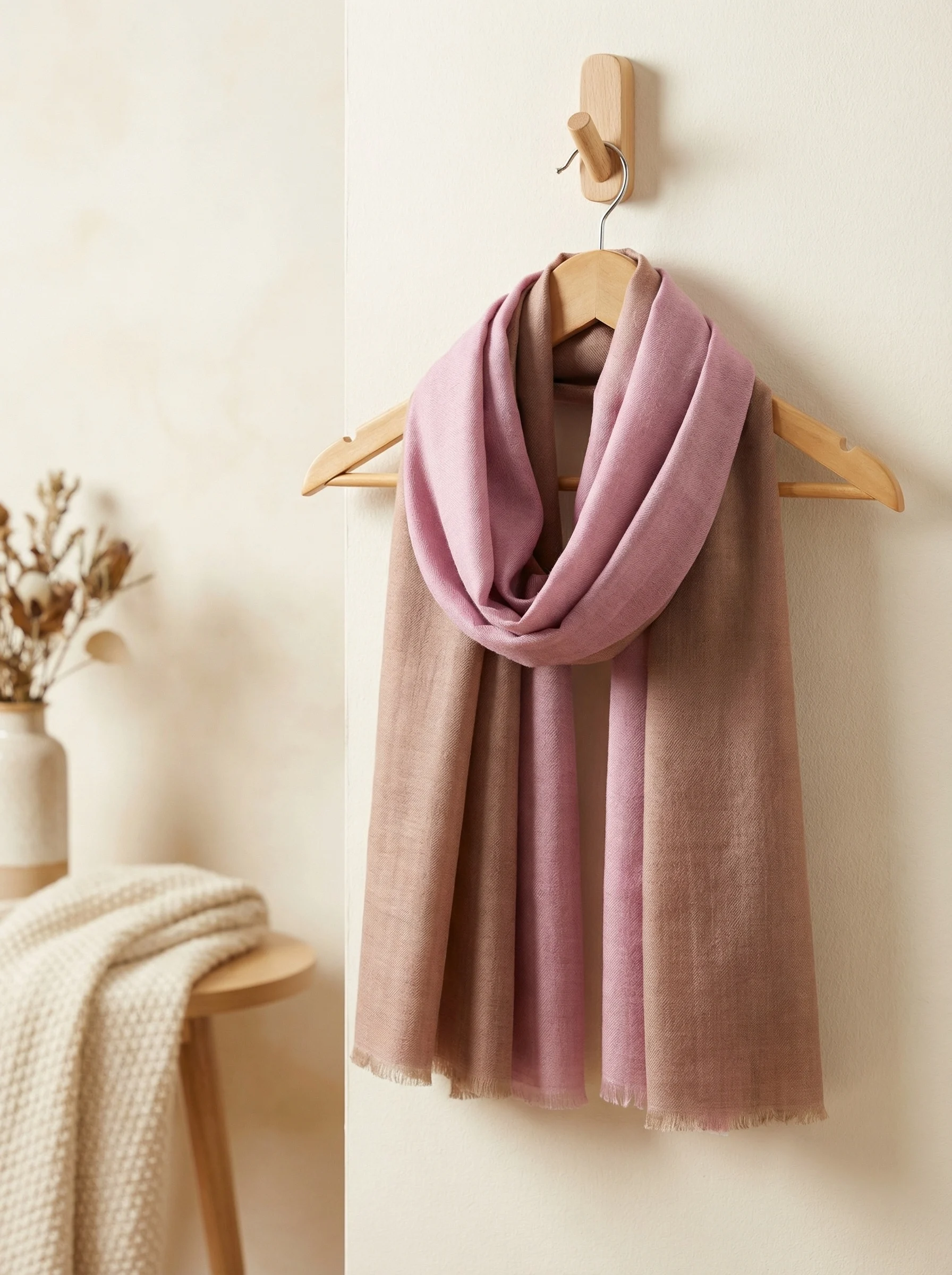 Ombre Pashmina Flamingo Pink, Beige, and Grey