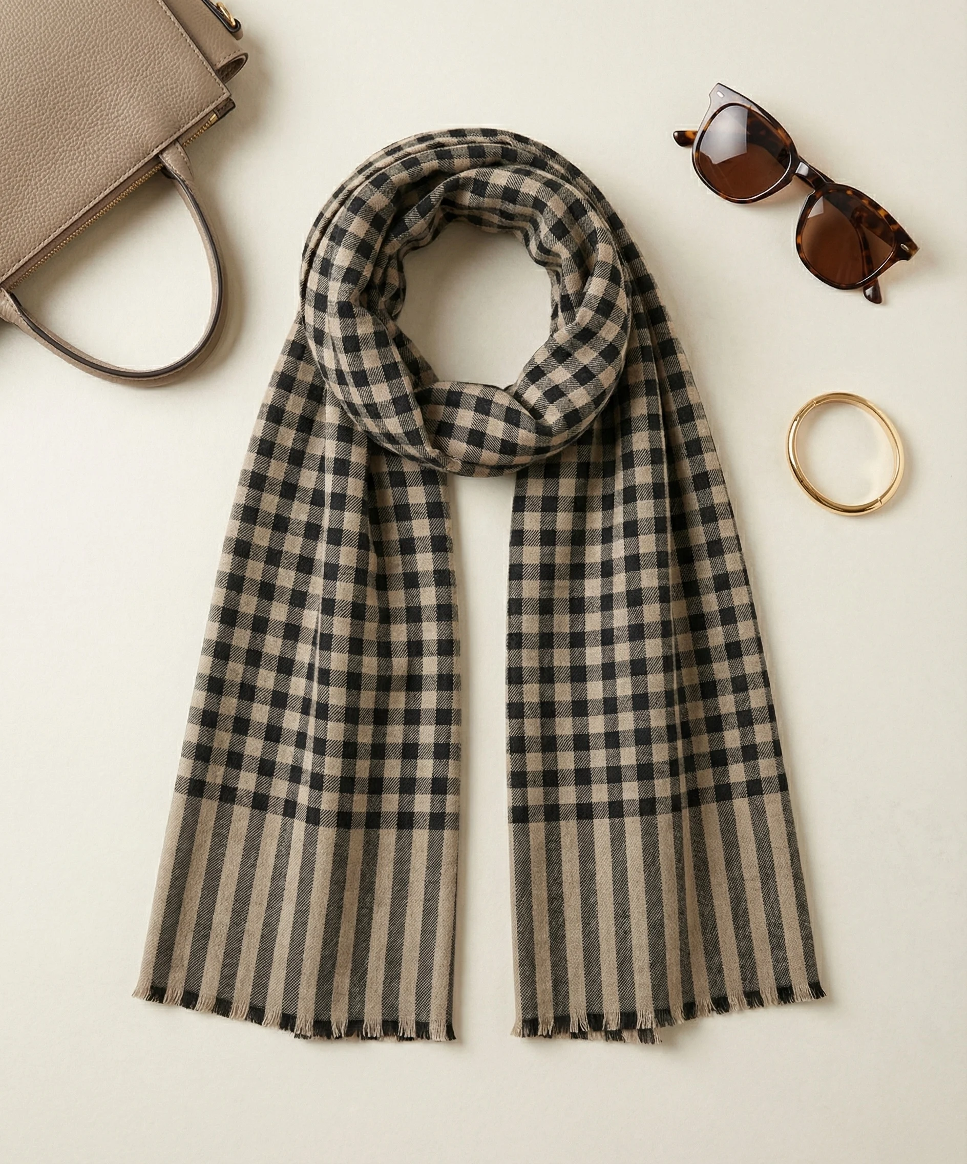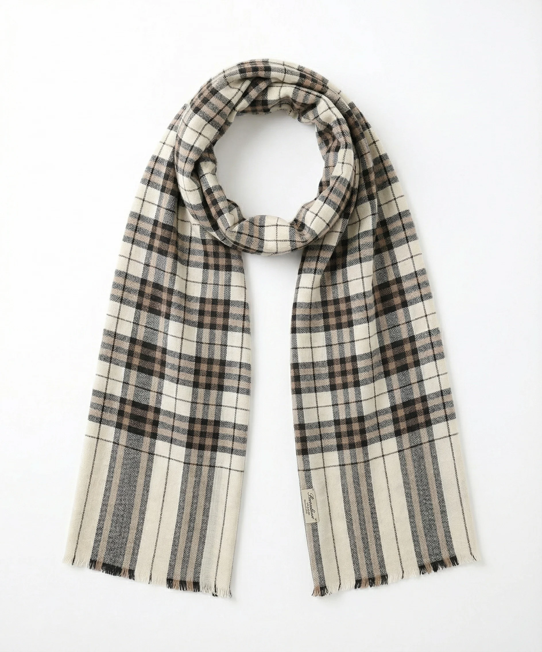 Black and Beige Tartan Checks Pashmina Cashmere Scarf
