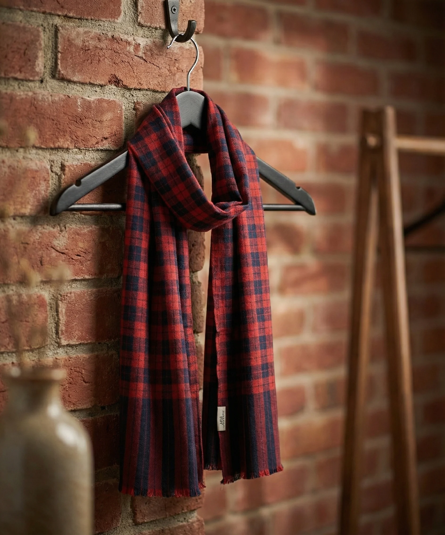 Deep Red Tartan Checks Pashmina Cashmere Scarf