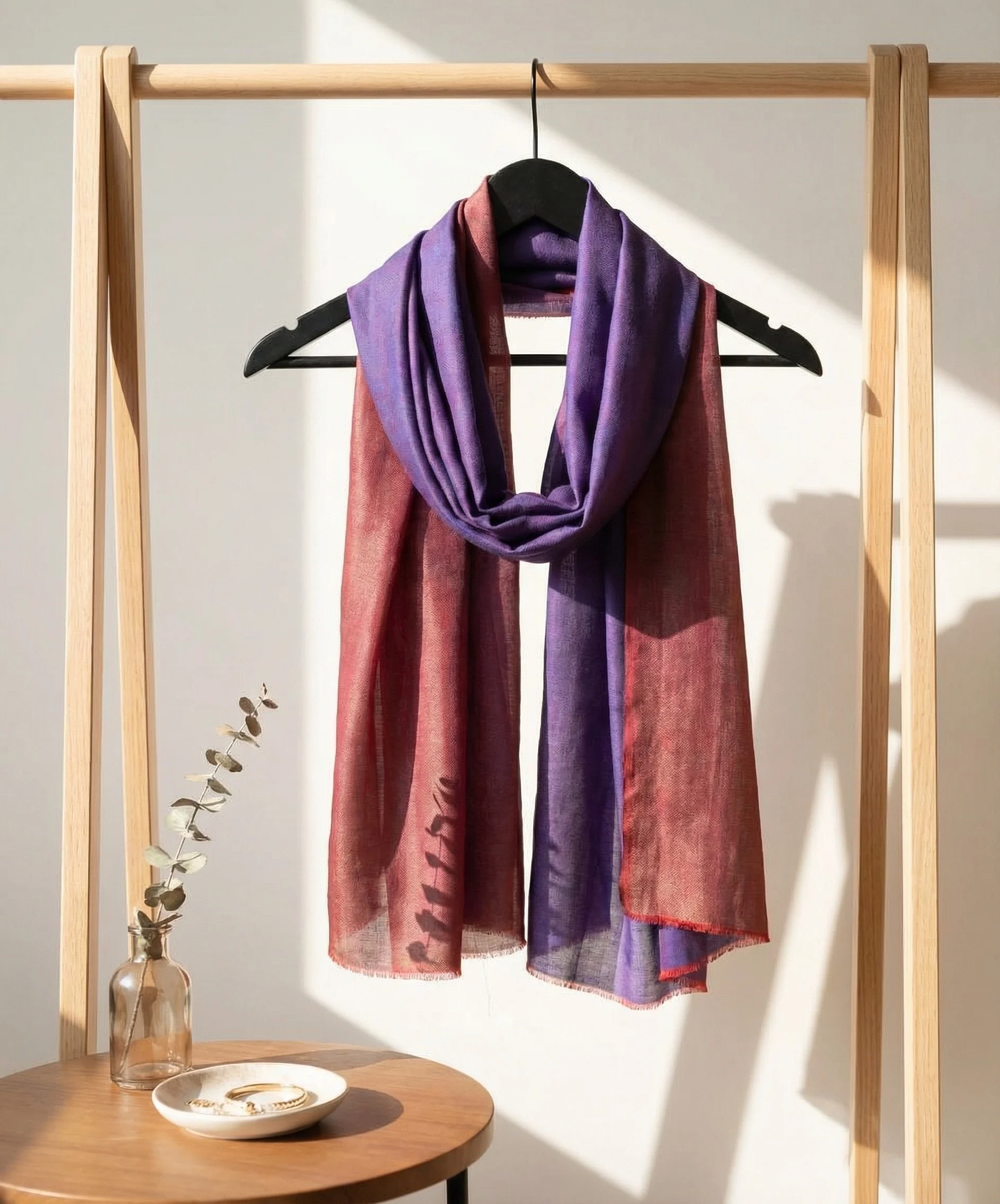 Reversible Beige and Red Pashmina Cashmere Scarf