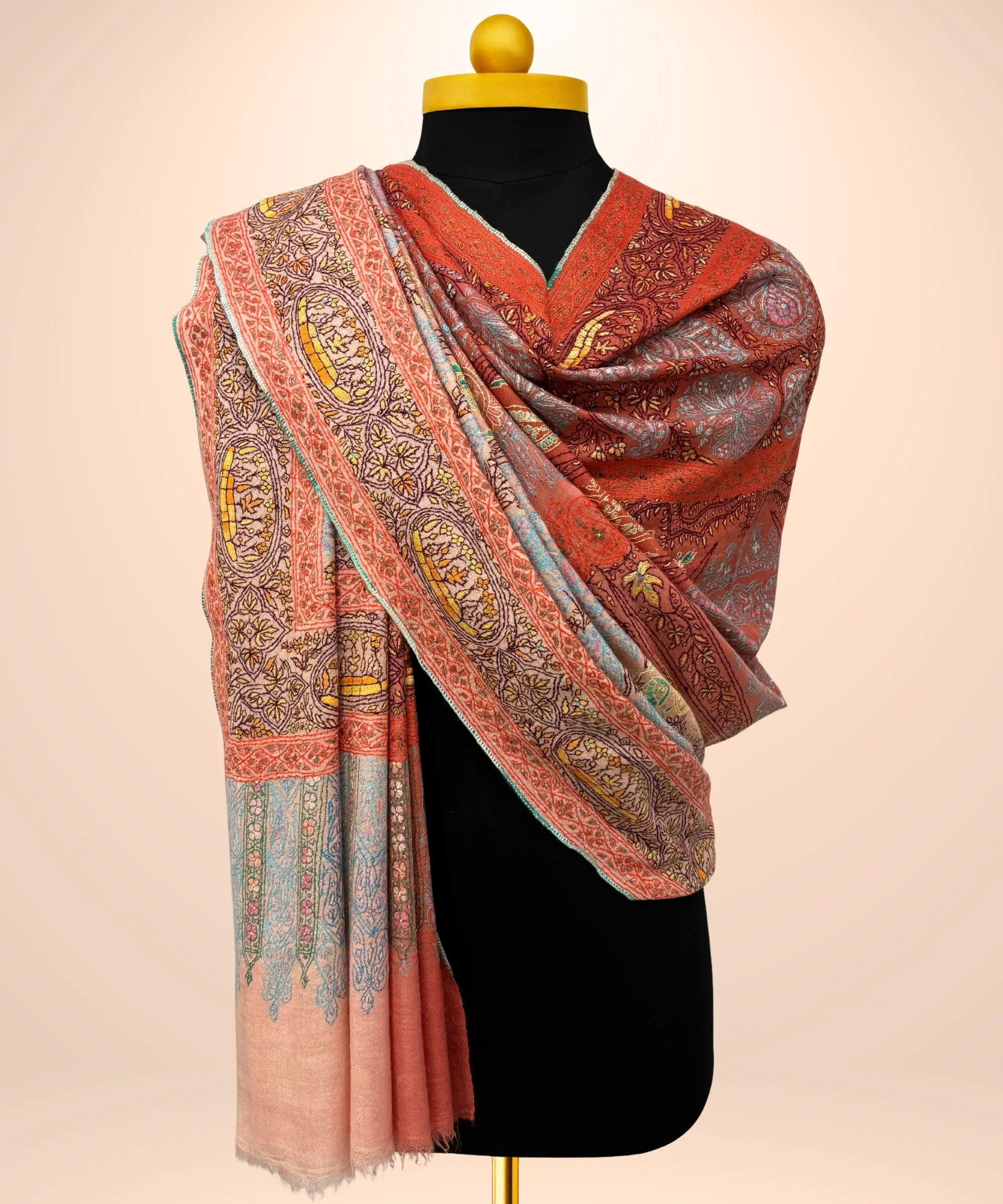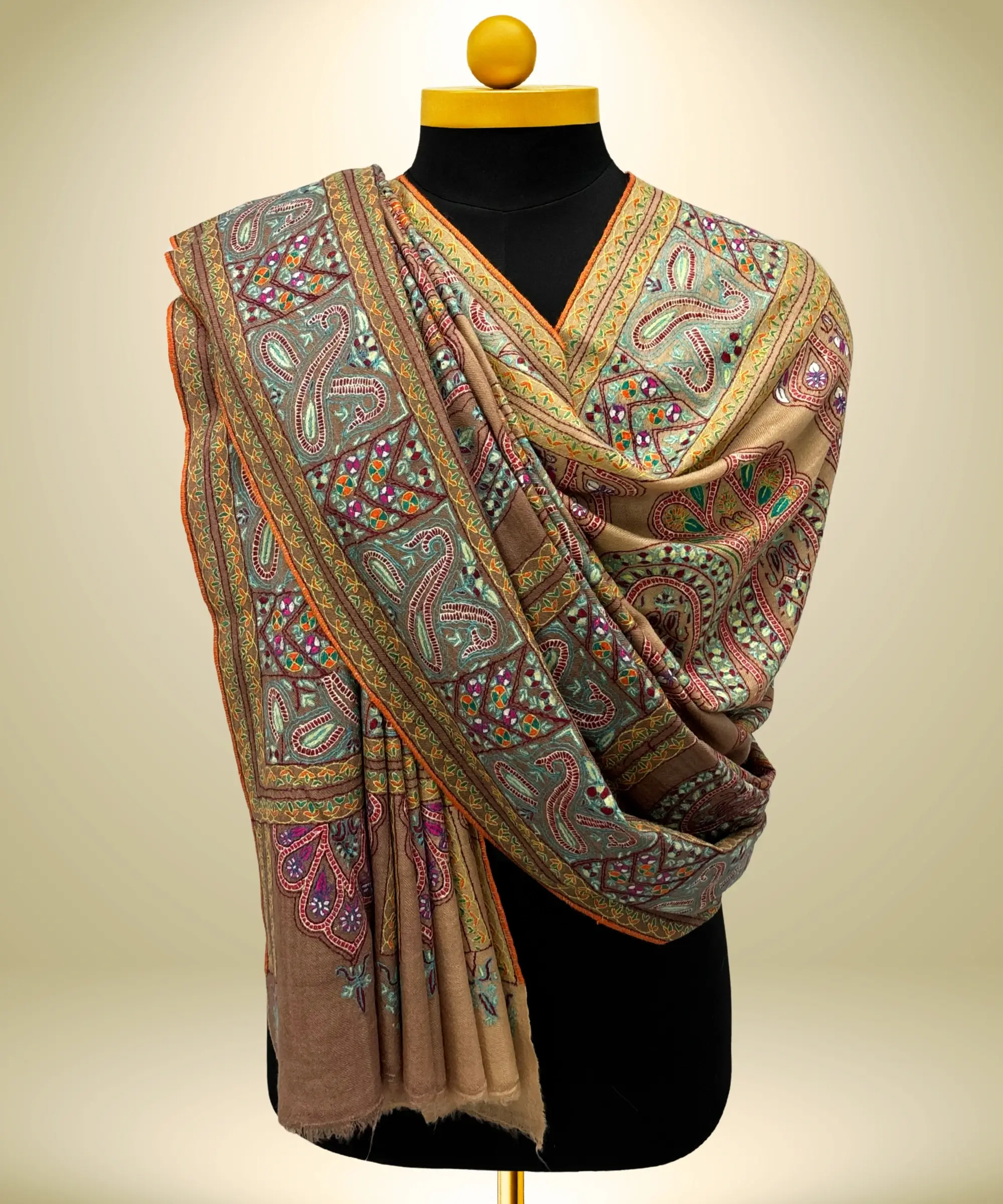 Handmade Pashmina Jamawar Shawl in Mellow Amber
