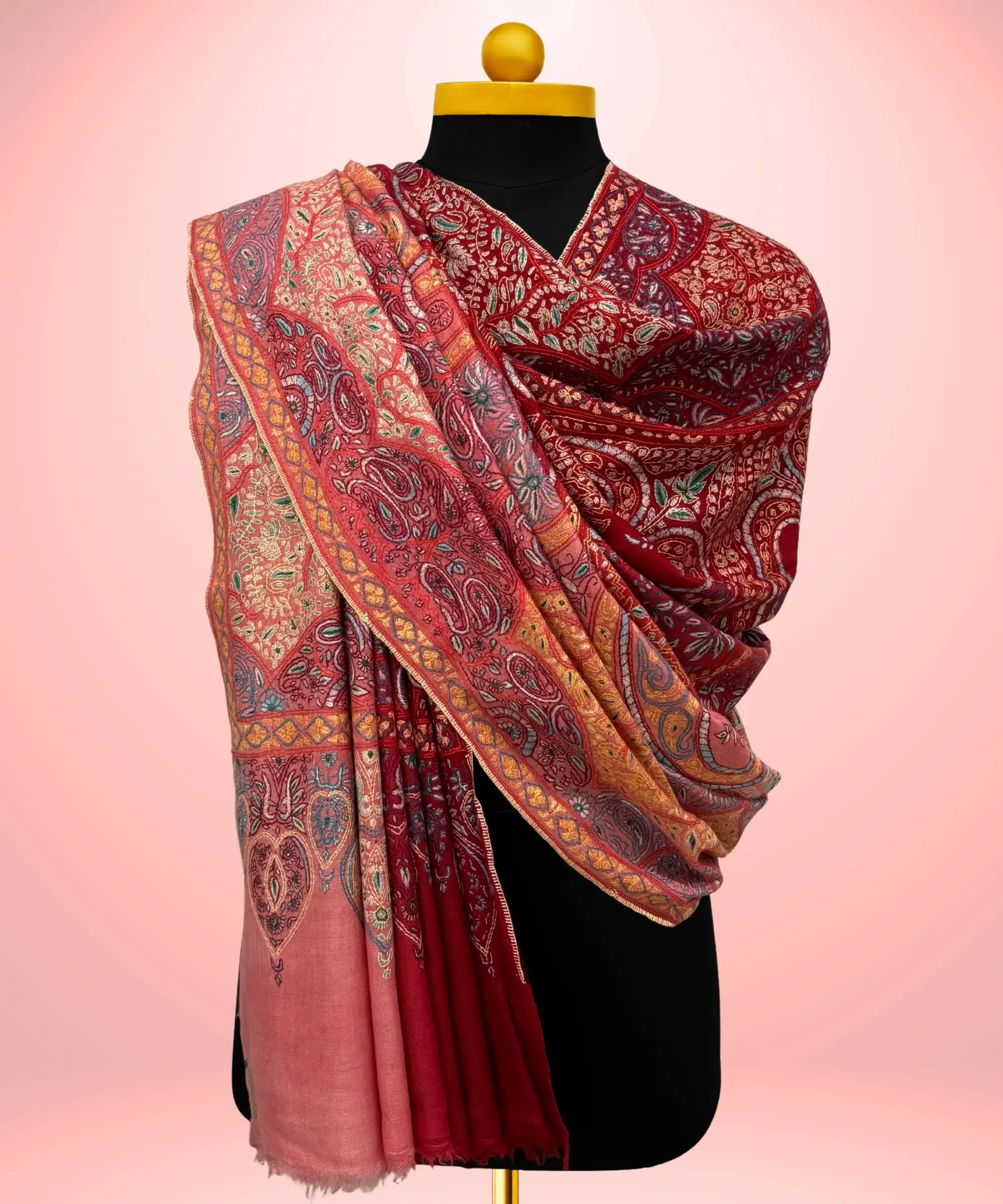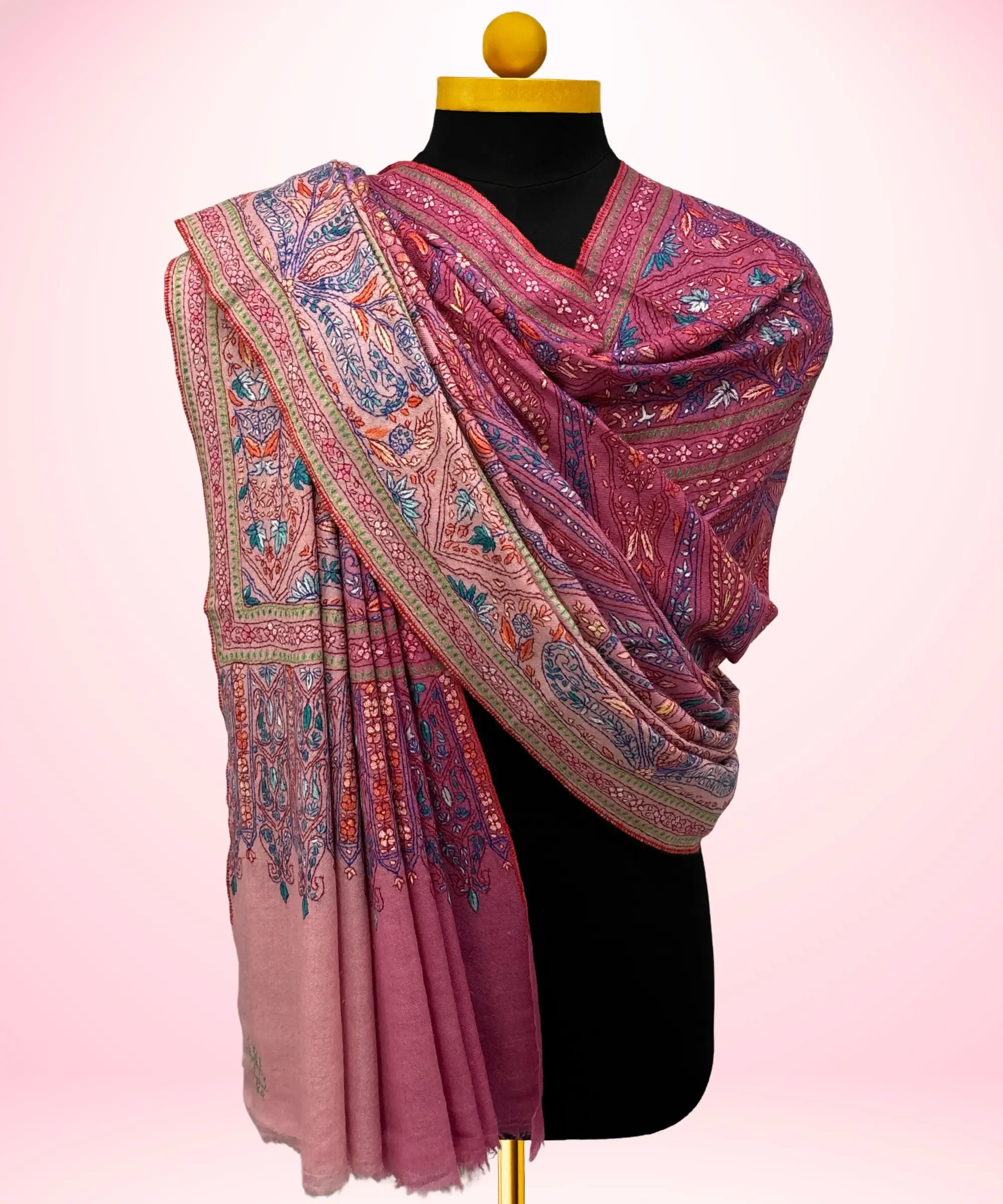 Handmade Pashmina Jamawar Shawl in Antique Rose