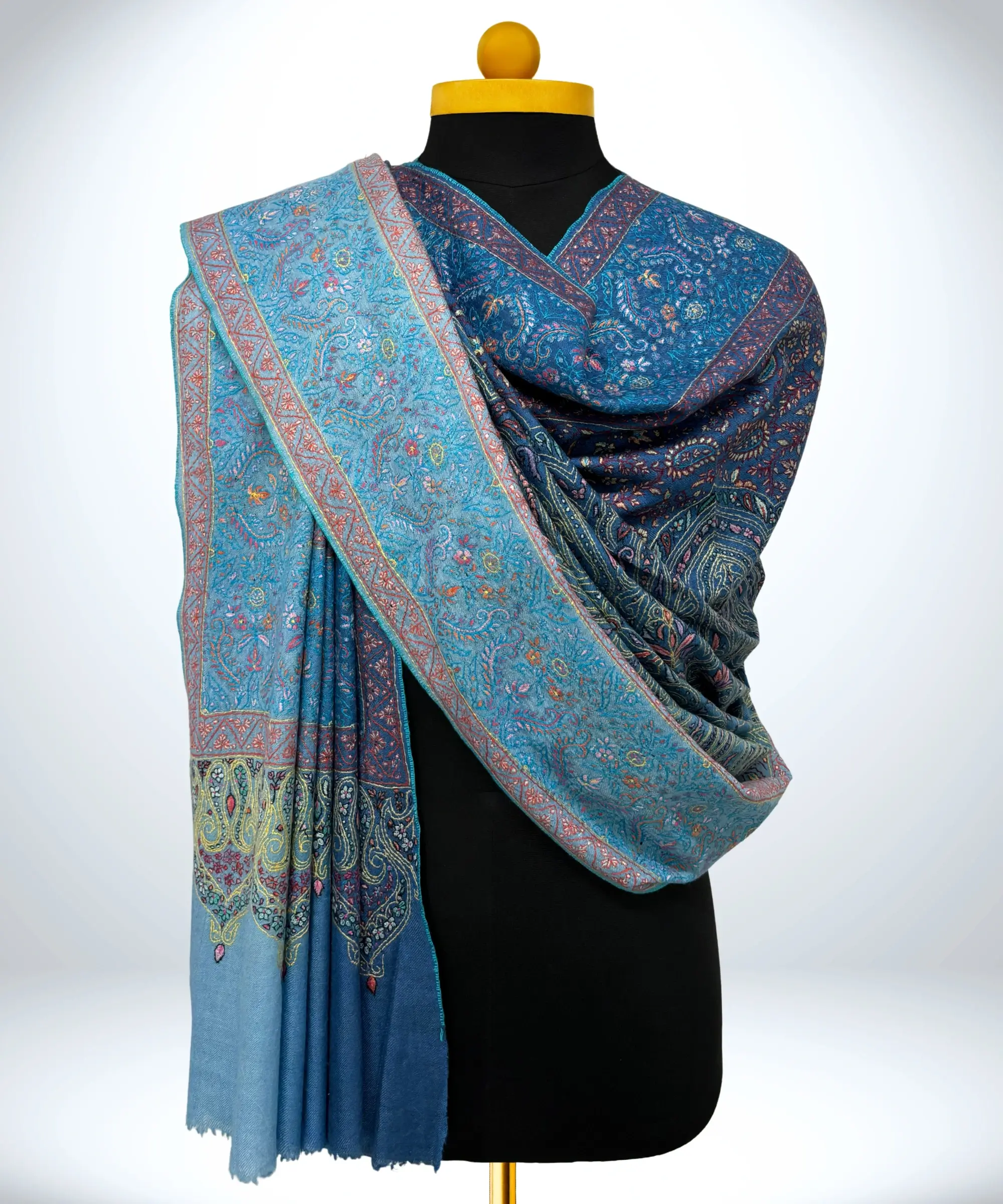 Handmade Pashmina Shawl Sozni Embroidery Sapphire Blue