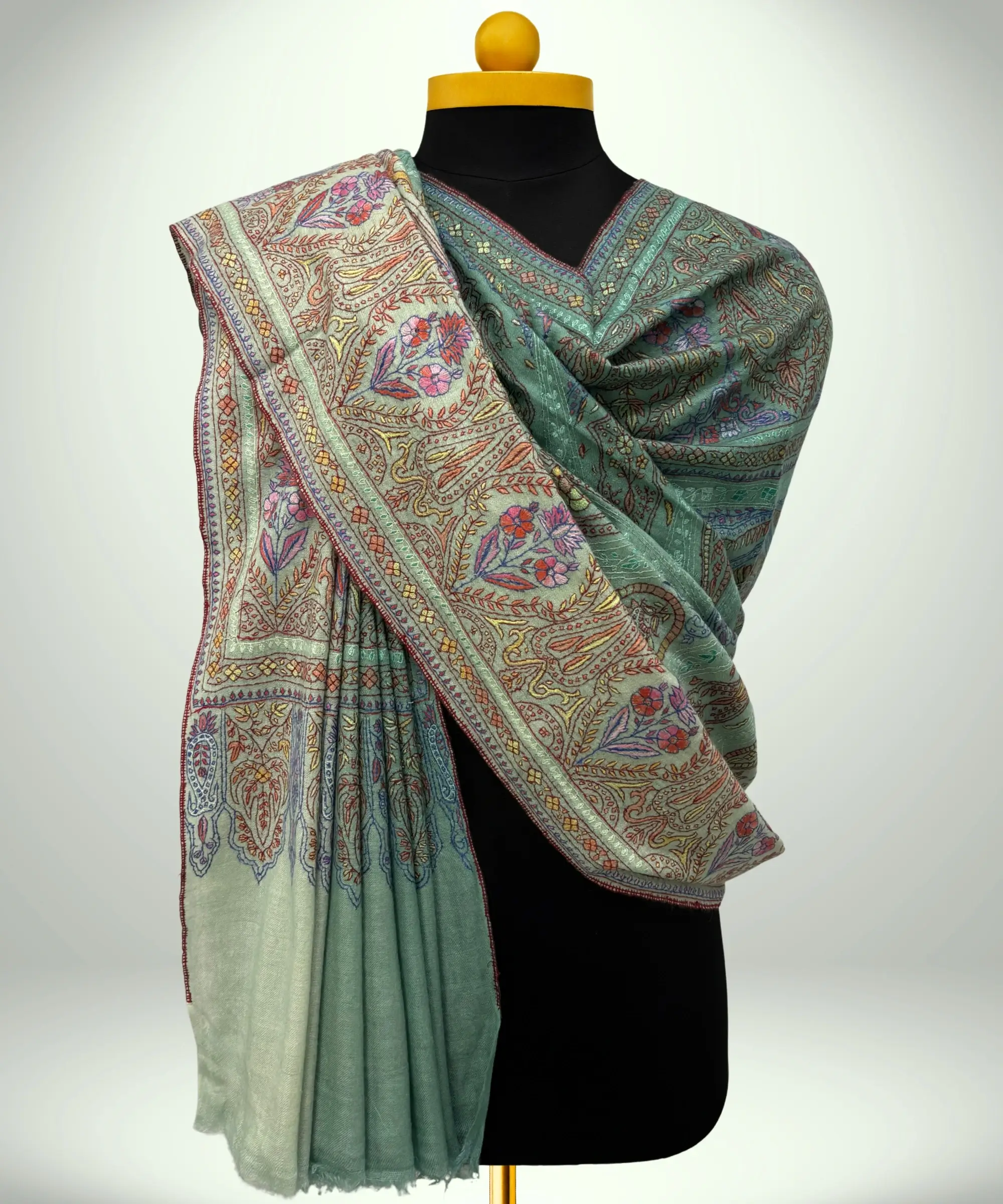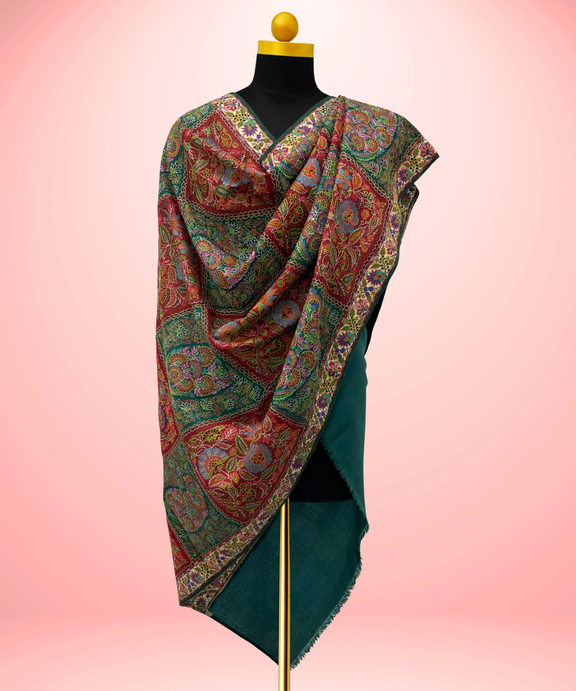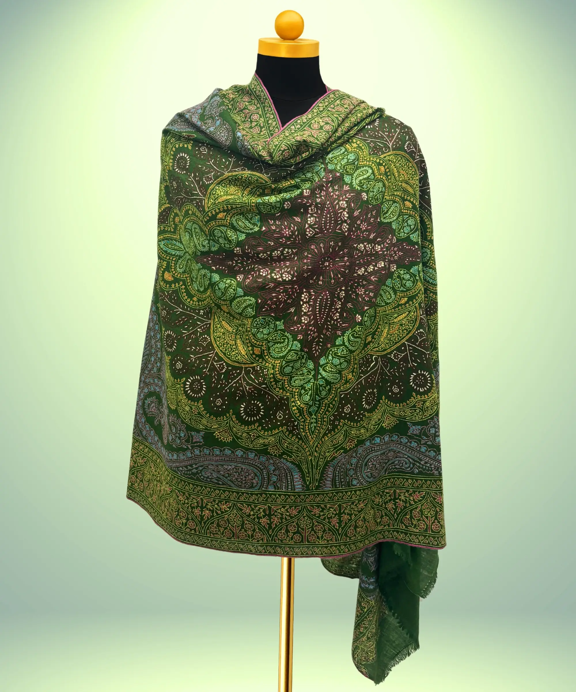 Handmade Pashmina Jamawar Sozni Shawl Emerald Green