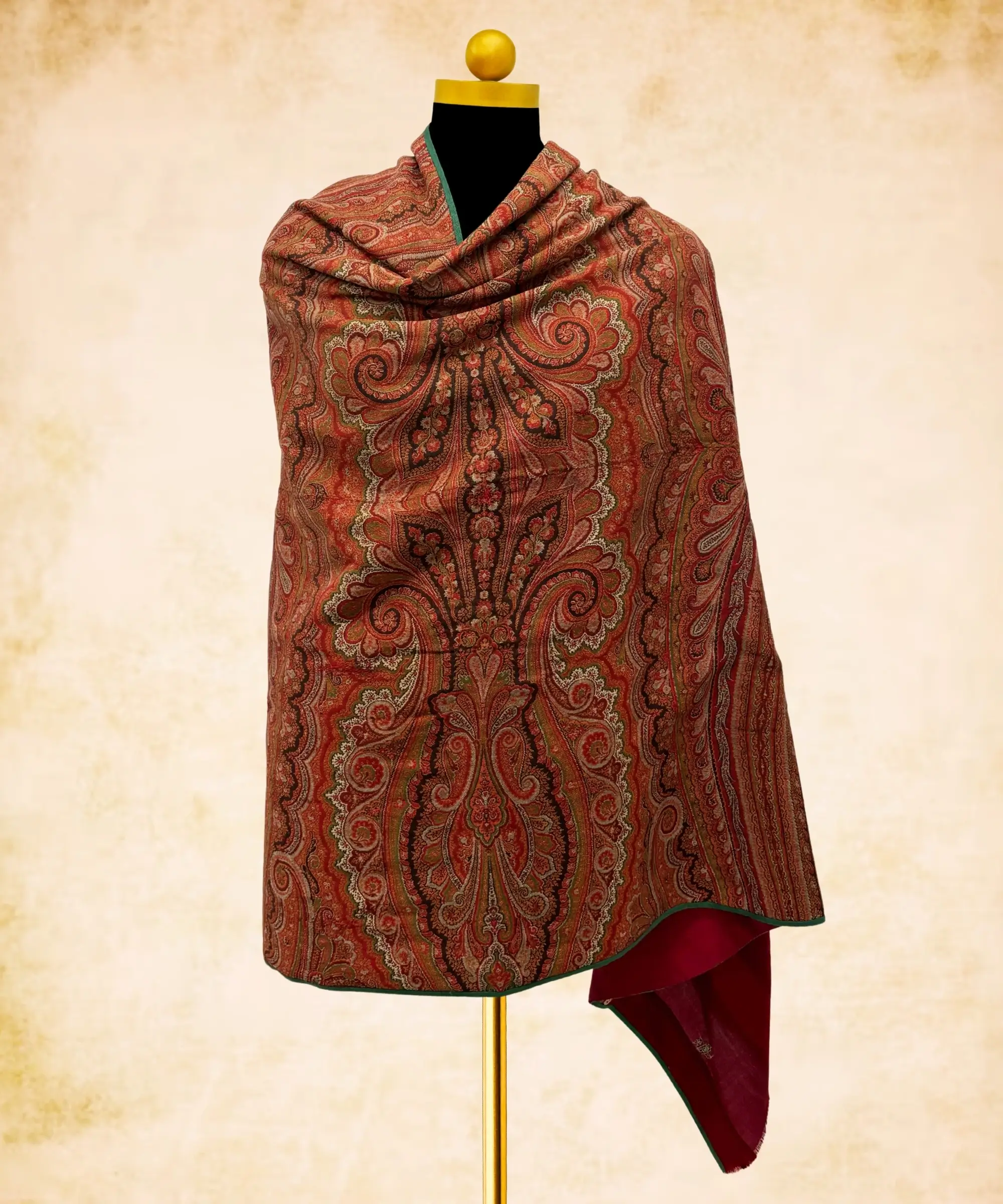 Handmade Jamawar Pashmina Shawl Ochre Red