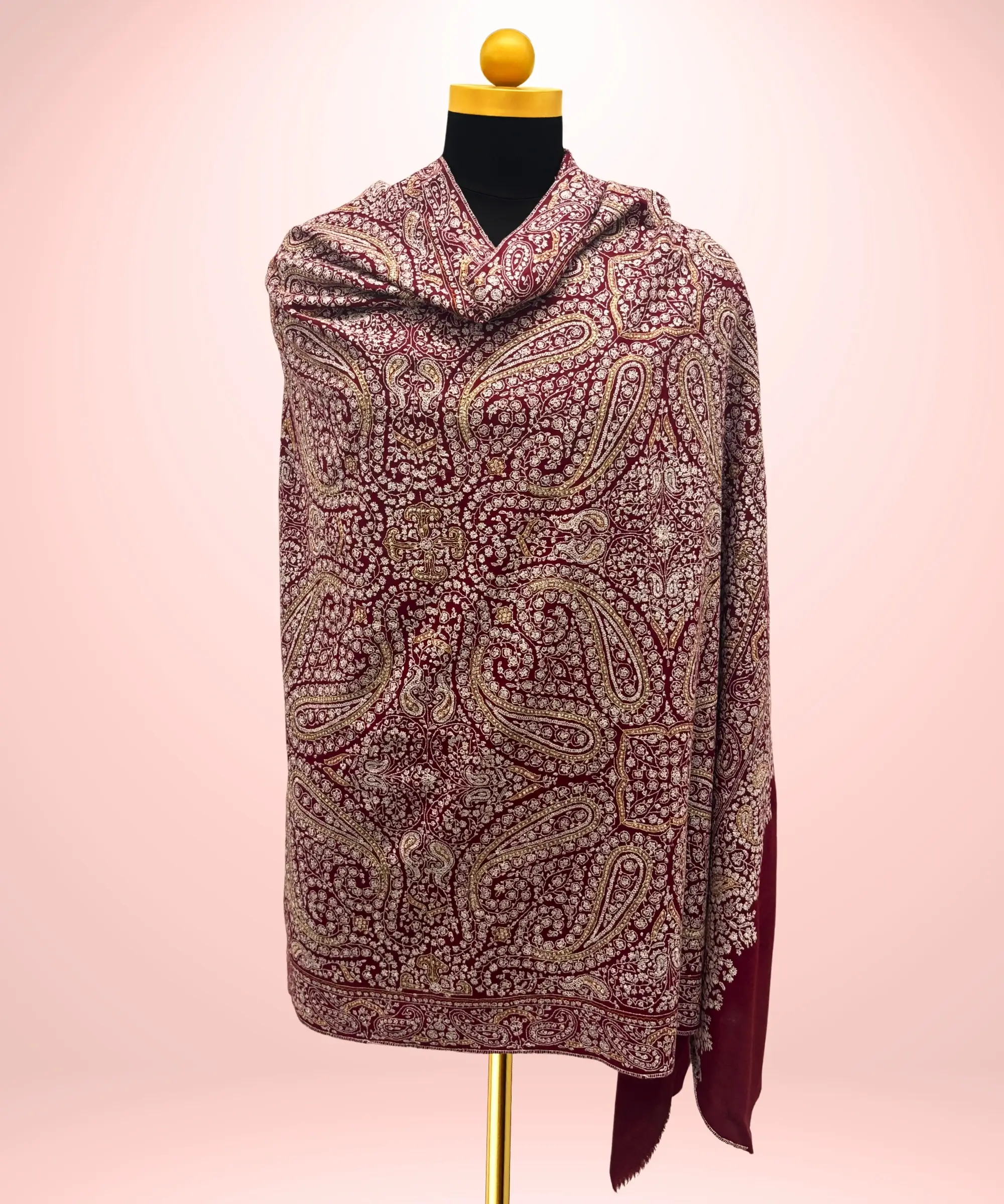Reversible Maroon and Beige Zari Pashmina Cashmere Stole