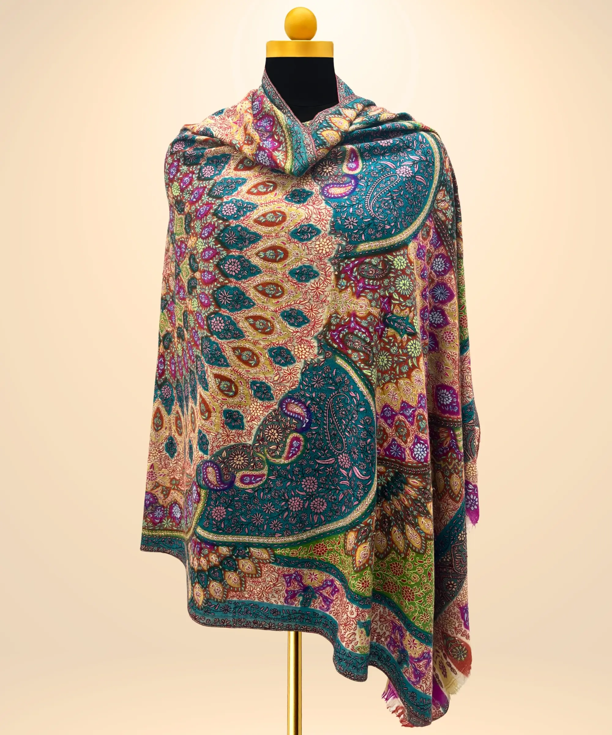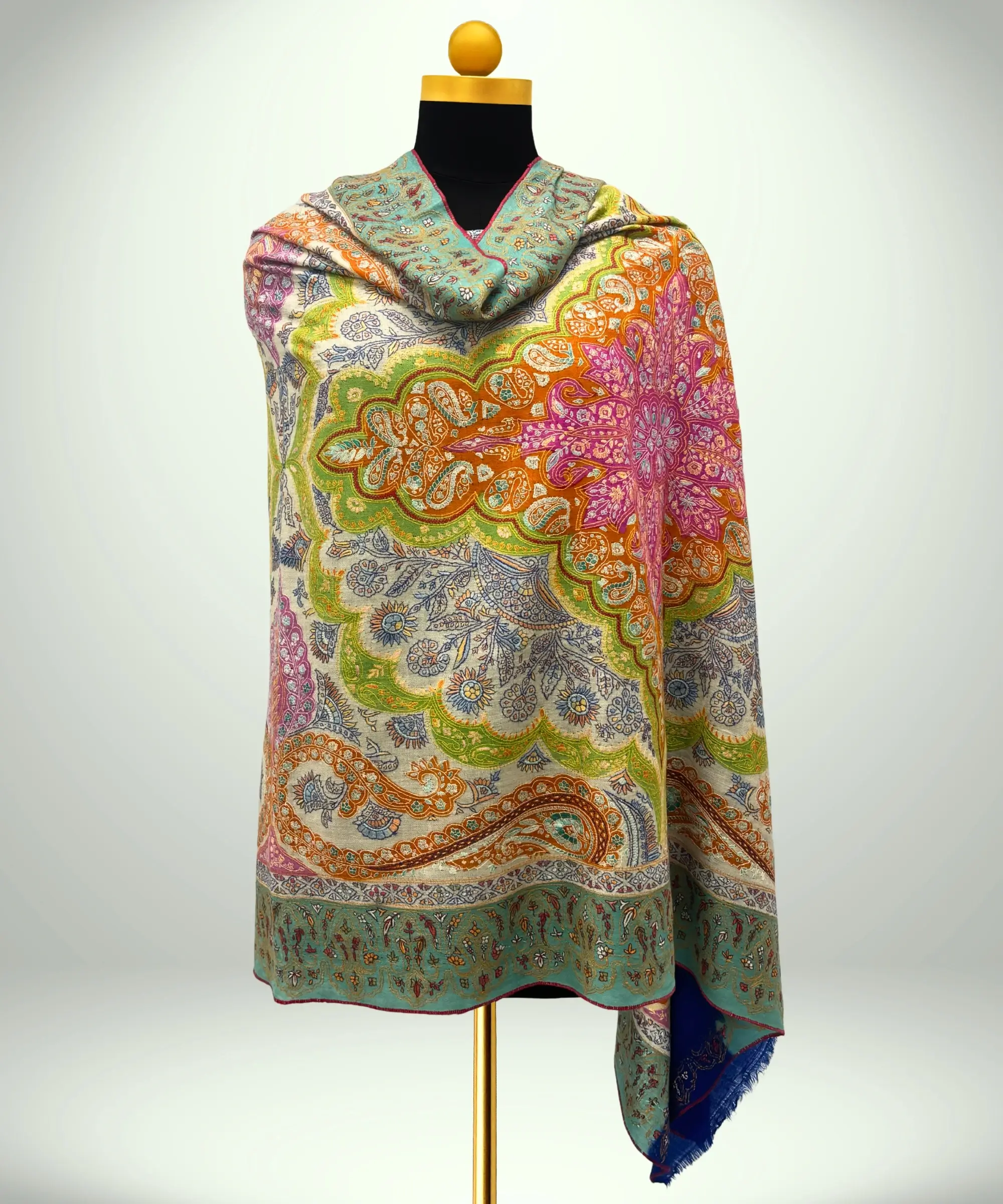 Handmade Pashmina Jamawar Shawl With Sozni Embroidery
