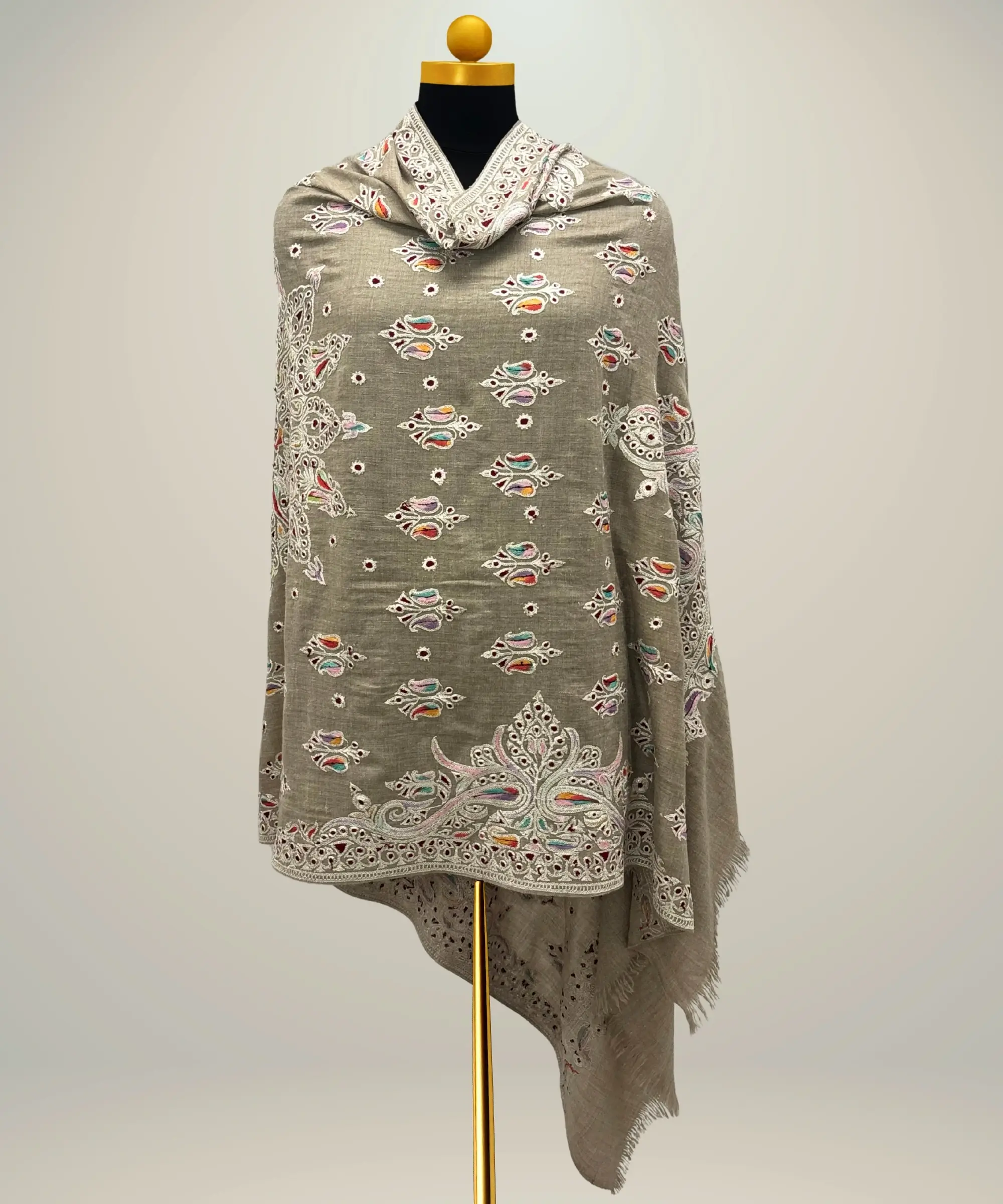 Handmade Grey Pashmina Shawl With Zari Embroidery