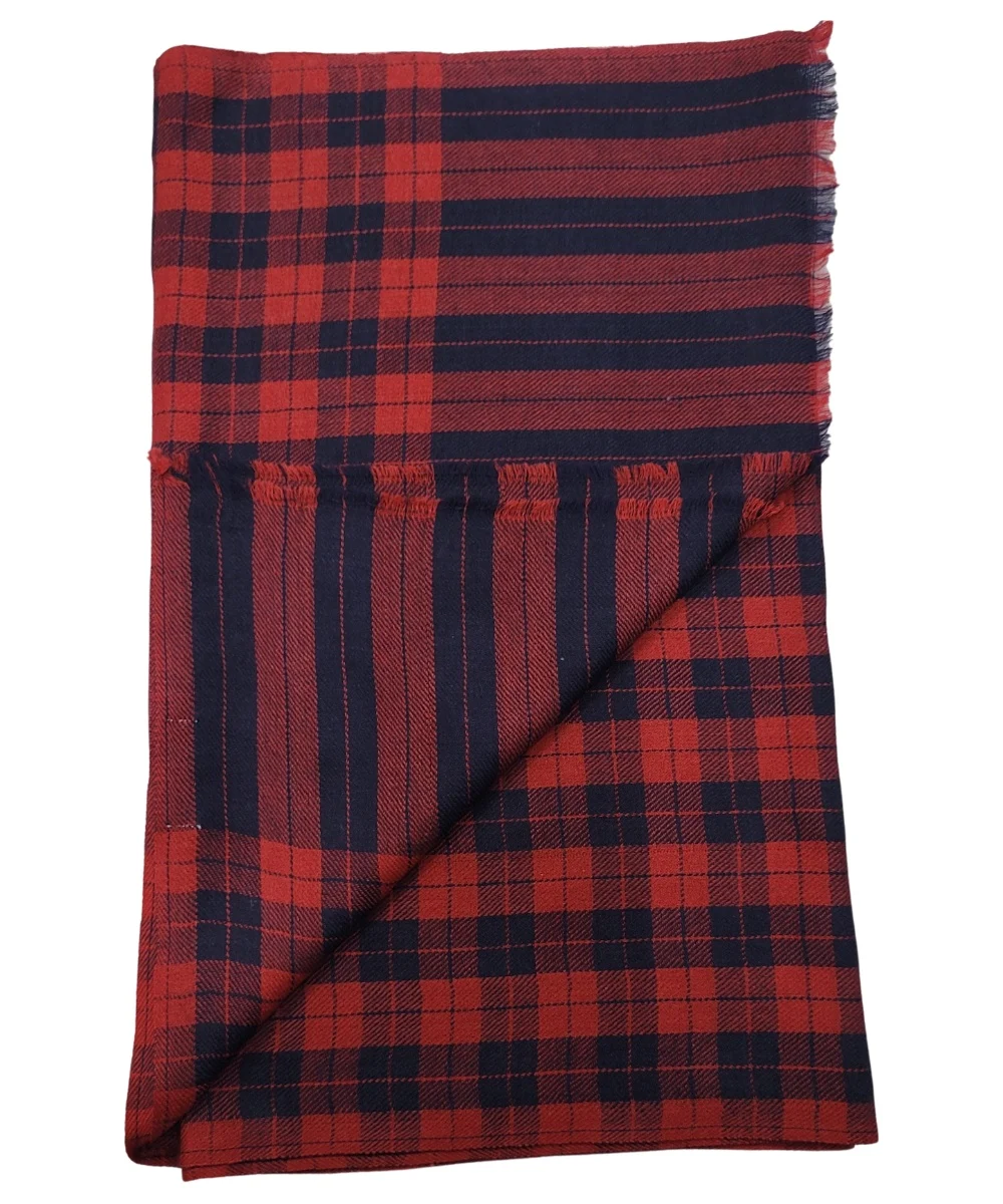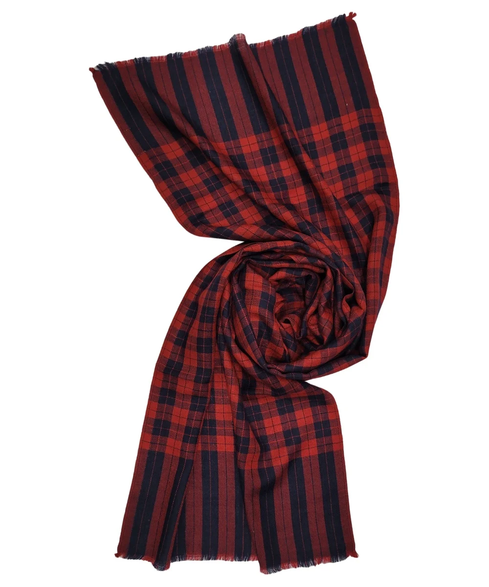 Handwoven on a traditional loom from pure Pashmina, this deep red scarf features a classic tartan check that lends quiet structure and timeless character to its soft, airy base. The balanced pattern enhances the natural elegance of the fabric while preserving the exceptional softness, warmth, and fluid drape for which Pashmina is prized. Effortlessly versatile and refined, this scarf blends heritage design with contemporary ease, making it a thoughtful addition to both everyday and elevated wardrobes.