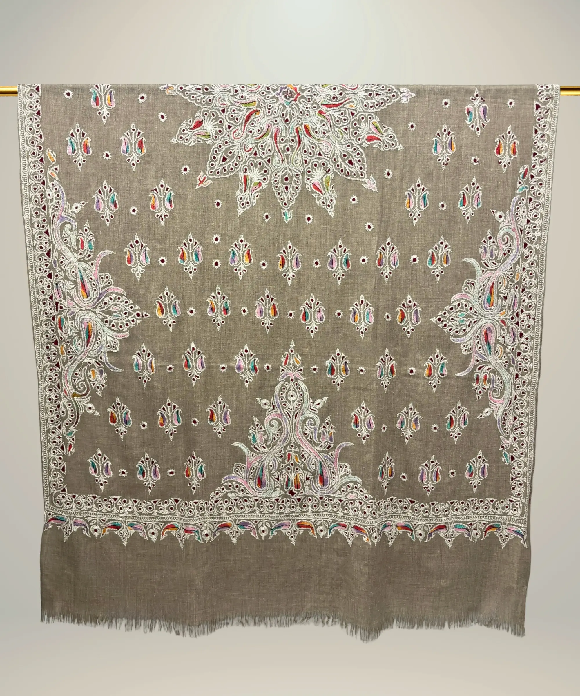 A shawl of this calibre is more than an accessory. It is a reflection of time, skill, and tradition. With proper care, it can endure for years, even generations, becoming a cherished heirloom that carries both beauty and meaning.