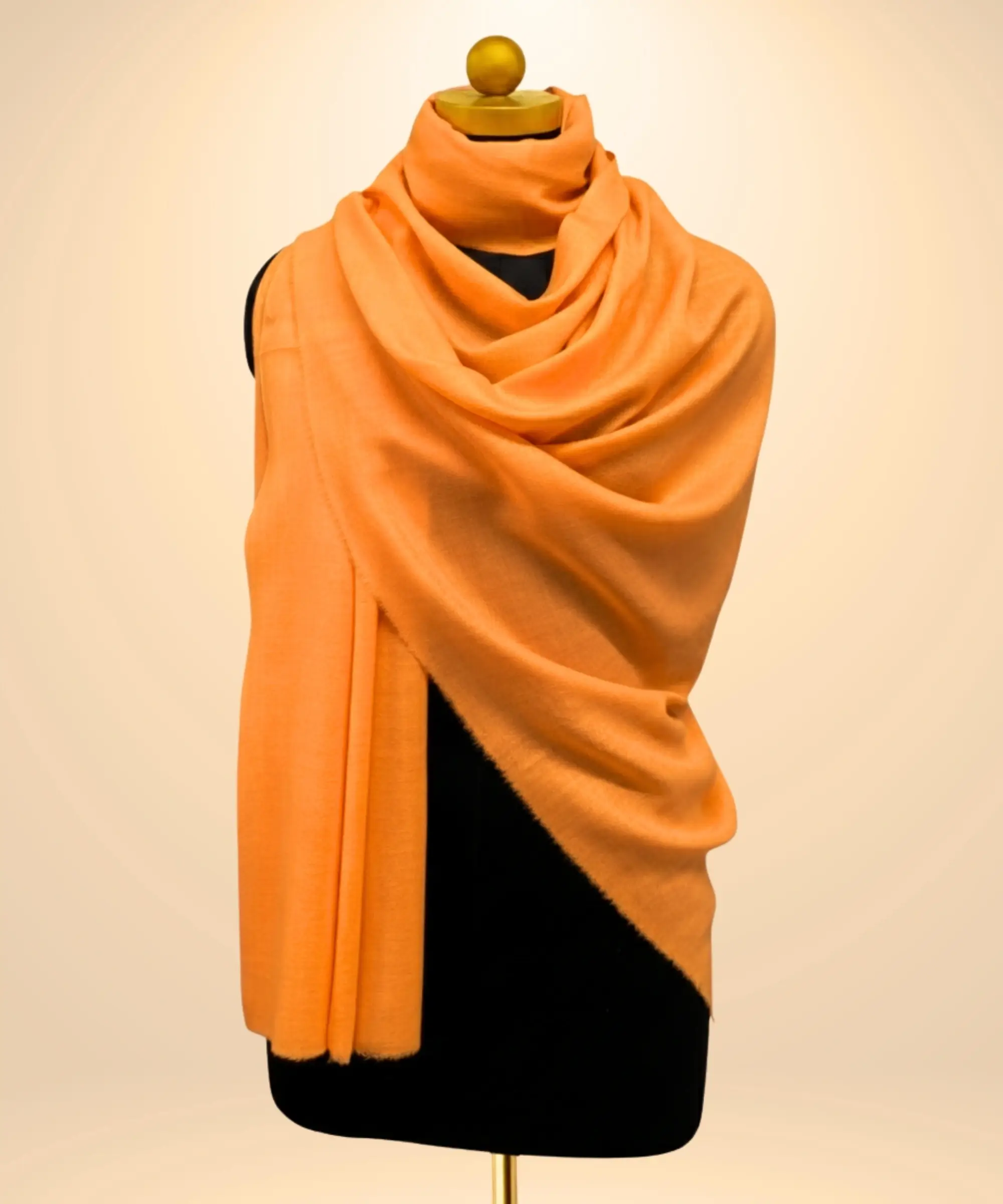 This Pashmina shawl is woven on a traditional handloom in Kashmir, where skilled artisans work patiently with fine Pashmina yarn to create a fabric that feels soft, warm, and feather-light. Each thread is guided by hand, giving the shawl its smooth texture and natural drape.