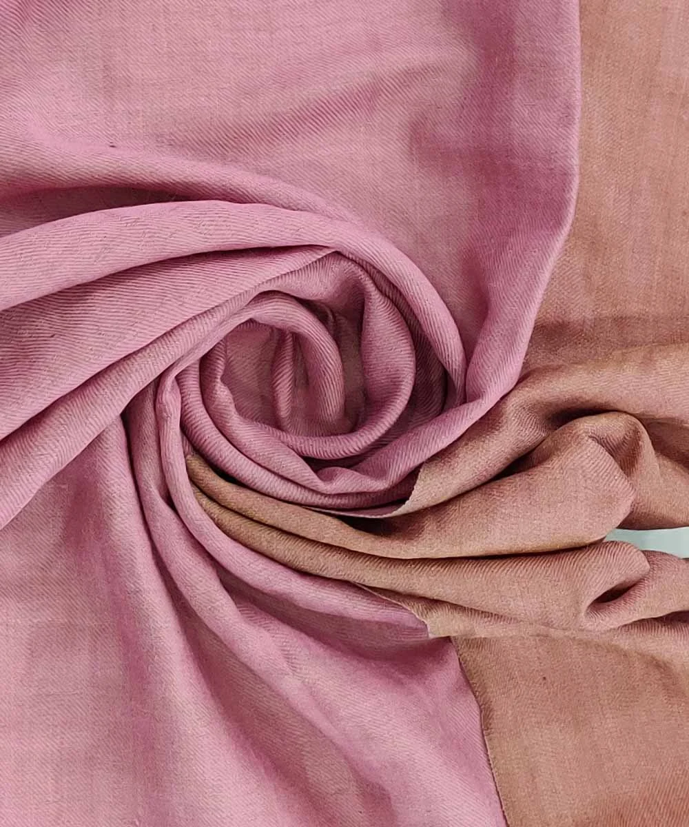 Woven from pure Pashmina cashmere, this reversible stole pairs a soft beige with a gentle pink, enriched by delicate zari detailing that adds a subtle glow to the fabric. The reversible design offers versatility, allowing the stole to shift effortlessly between understated elegance and a more luminous expression. Lightweight yet naturally warm, it drapes fluidly and feels exceptionally soft against the skin. Balancing traditional artistry with contemporary refinement, this stole is a timeless accent designed for elevated everyday wear as well as special occasions.